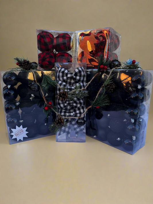Velvet Black Holiday Ornament Set (12 Pieces)