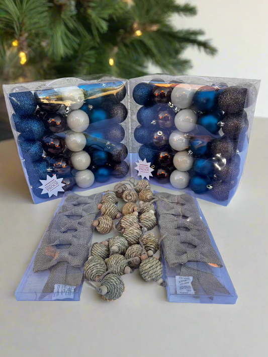 Midnight Elegance Ornament Set – Navy, Black, White, and Brown (50 Pieces)