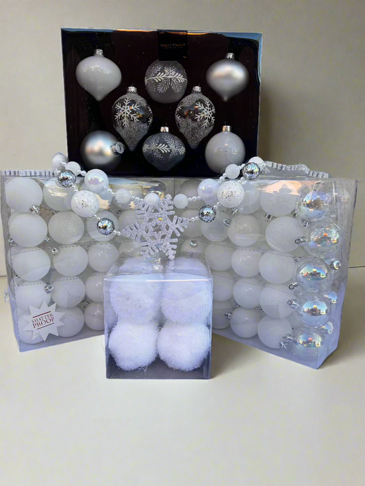 Winter Wonderland Ornament Set – White and Iridescent Elegance (50 Pieces)