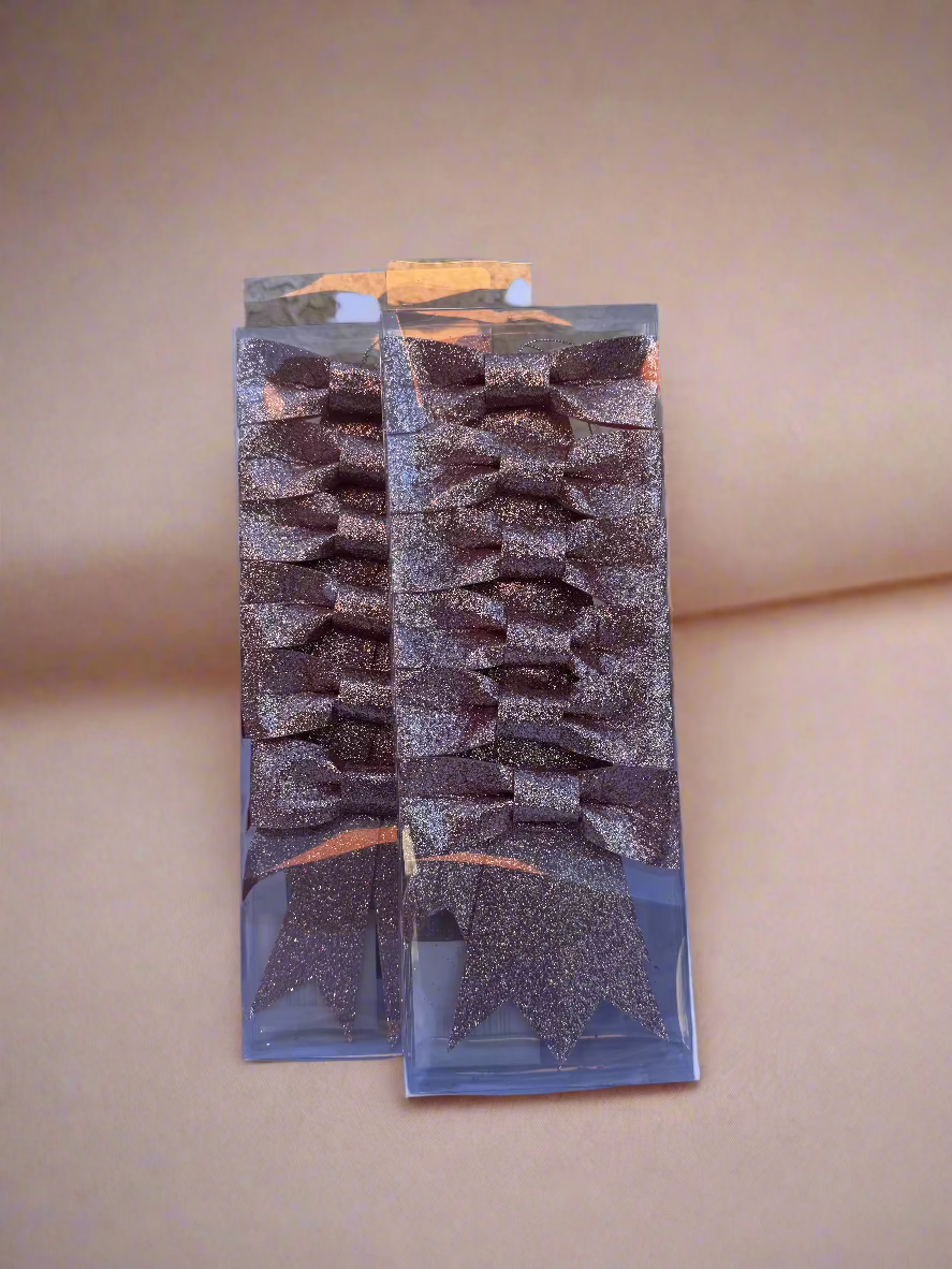 Glittering Pink Holiday Bow Set – Elegant and Festive (6 Pieces)